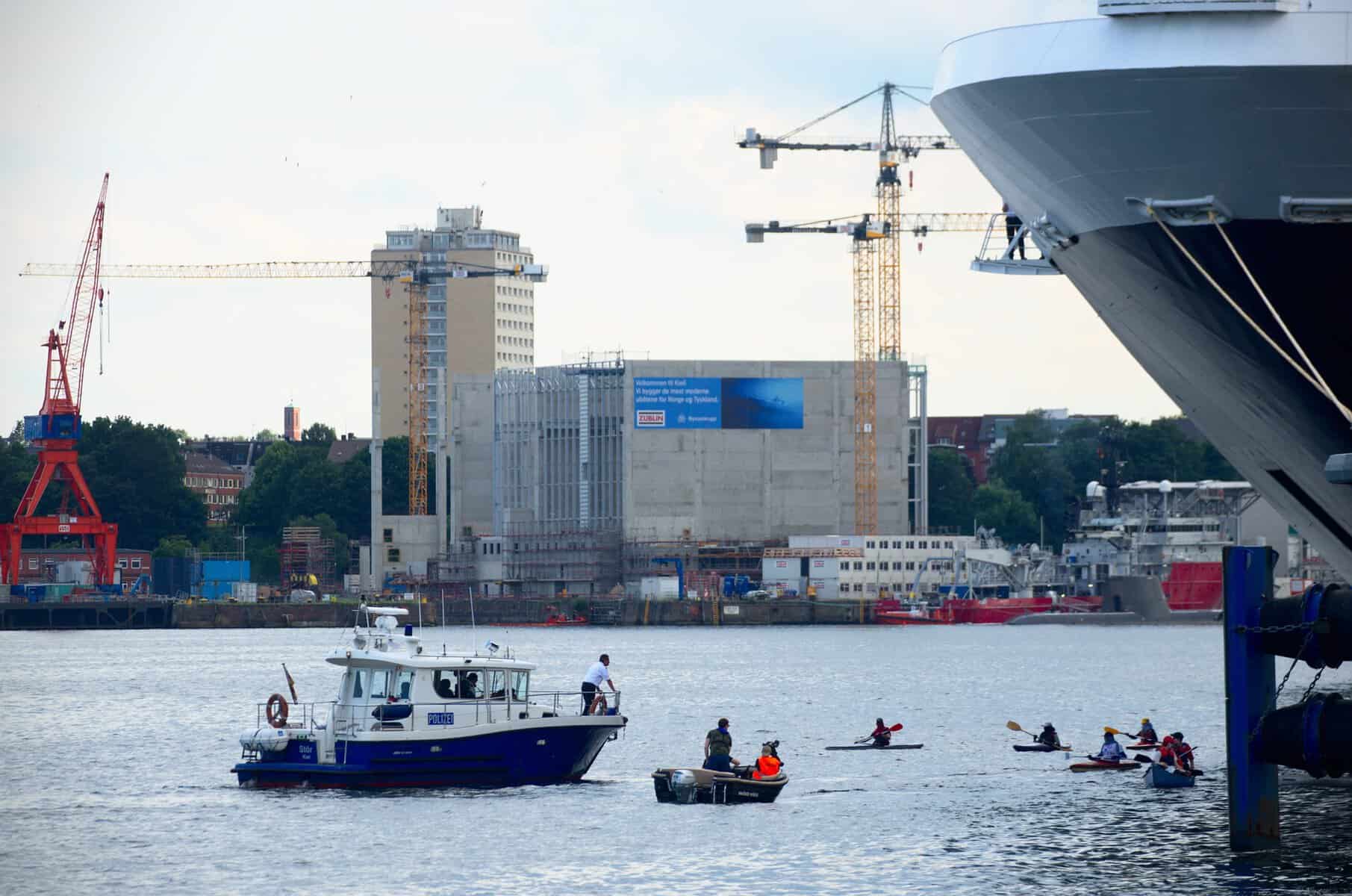 Klimaaktivisten von "smash cruiseship" versuchten am Montag in Kiel drei Kreuzfahrtschiffe am Auslaufen zu hindern.…